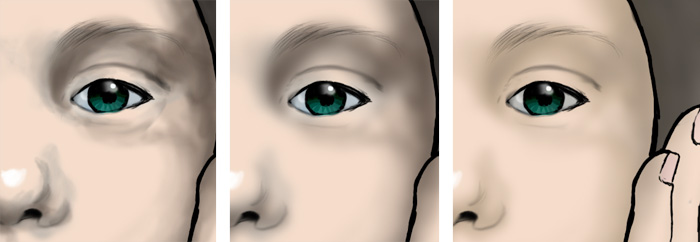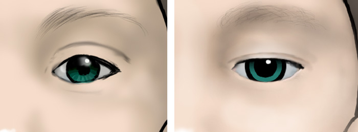 というわけで、まぶたを落とし気味にして、ついでに瞳や眉毛も描き直す。