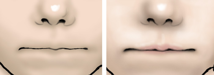 光の角度を意識しながら、肌に淡いライトを入れ、唇に色を付けてみます。
