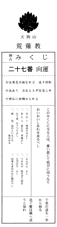 今年のおみくじ。向運って何? 他の人は小吉とか末吉みたいな普通のだったのに。 っていうか、今年は東京に行く予定なのに、南西が吉って…正反対じゃないのさ…orz ちなみに、なんて運勢だったかは忘れたけど、去年も聞いたことも無いようなので「今年は苦労が多いけど、来年からは良くなる」みたいな事が書いてありました。 なんか今年のと対になってるような感じだねぇ… |