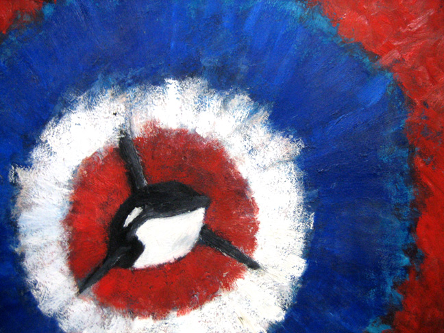 ボードに、絵の具と灯油(!)を混ぜたものを筆を使わないで指だけで塗りたくって描きました。